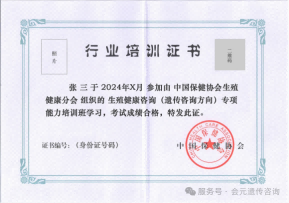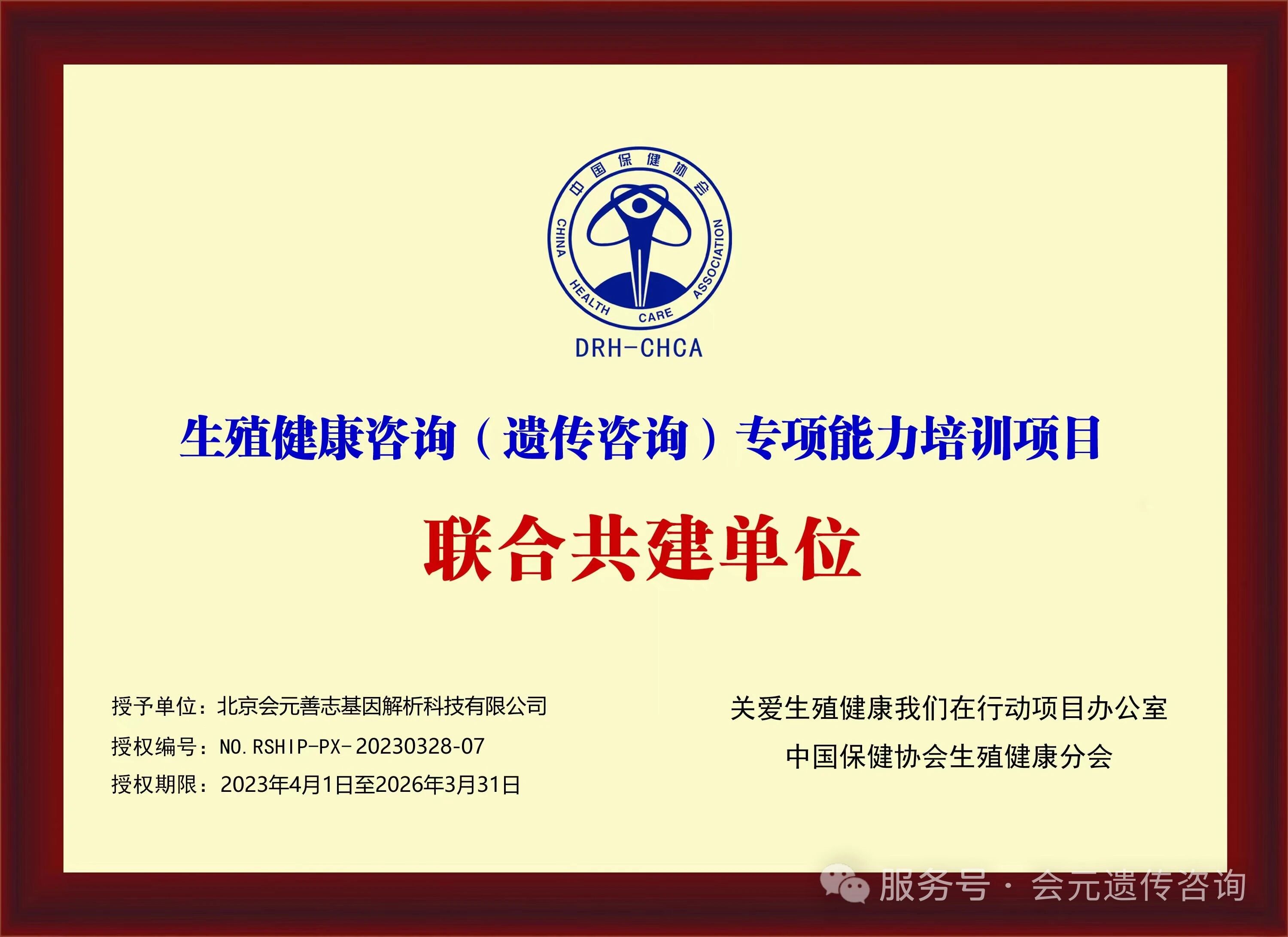 中国保健协会生殖健康分会联合会元遗传立足生殖健康遗传咨询需要,依据健康中国“关爱生殖健康-我们在行动”项目实施方案,参照《生殖健康咨询服务规范》标准,精选生殖健康遗传咨询核心知识,为各级医疗机构,妇幼保健机构、生殖健康中心、产前诊断中心、健康体检中心、基因检测实验室等社会涉及遗传咨询的相关产业单位的从业人员,开展常态化生殖健康遗传咨询方向专项能力培训,参培学员考试合格可获由中国保健协会签发的遗传咨询能力专项《行业培训证书》。