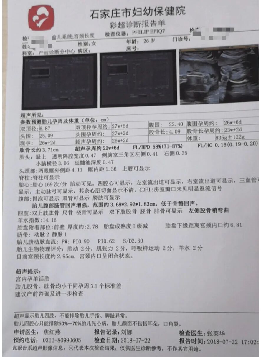 孕26周彩超检查结果