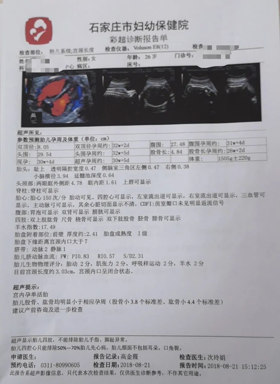 孕30周彩超检查结果